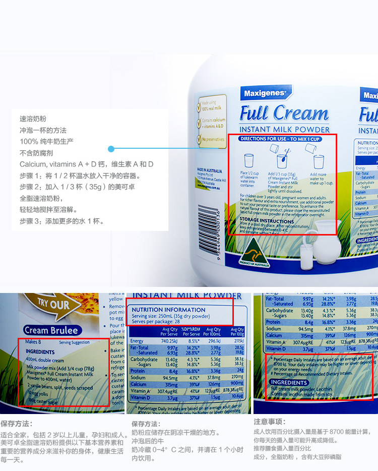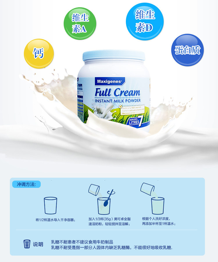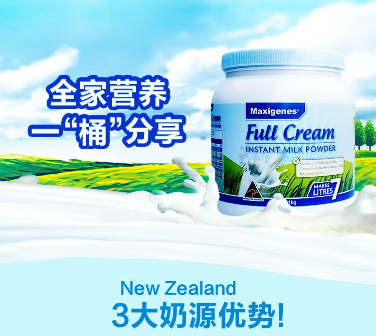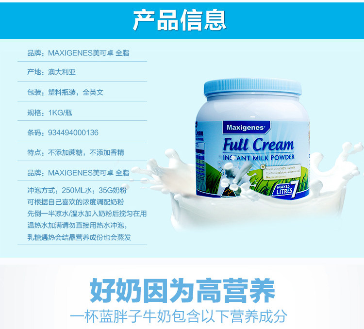 蓝胖子 Maxigenes 美可卓 全脂高钙奶粉