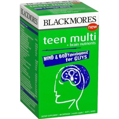 Blackmores Teen Multi for Guys is a multivitamin and mineral supplement including five nutrients essential for healthy brain development; iodine, omega-3 fatty acids, iron zinc and vitamin B12.